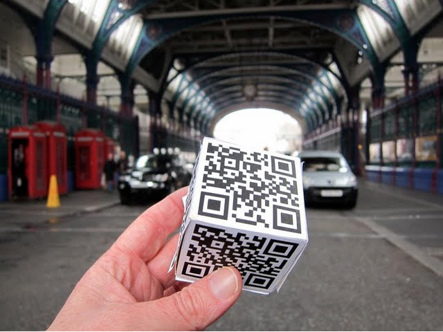 This week we tested StoryCubes made with the bookleteer API, as used in artist Simon Pope and programmer Gordon Joly’s StoryCube Cairn project. Simon & Gordon have been experimenting with a simple interface allowing people to embed web links (URLs) as QR Codes onto the cubes which can be read by devices like mobile phones. For the project they have been creating a series of walks and embedding maps and other media links as playful wayfinding tools.